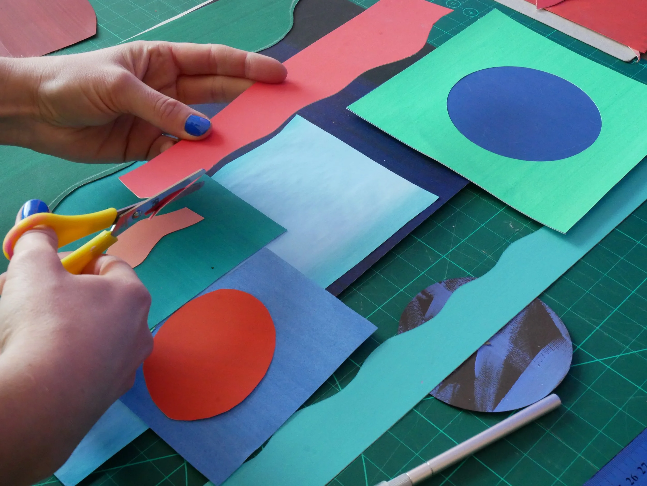 Molly works with collage at the heart of her process, using it as a tactile and intuitive way to explore stories, shapes and rhythm through hands-on making. Her style is bold, colourful and full of energy, with playful cut-out shapes and layered compositions bringing movement, positivity and joy to every space she works in.