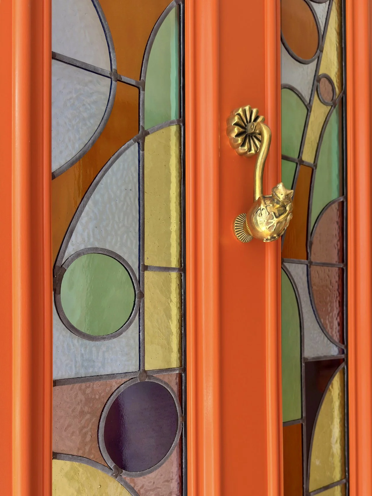 A delicious design treat: a stained-glass window for Brighton’s “door of dreams.” It’s part of a vibrant porchway scheme with tiled floor murals and a hand‑painted entrance. Bold, bright and full of character - this doorway is ready to make a statement.